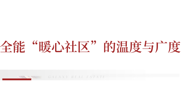 让服务有“温度”,星河提出了全能“暖心社区”的服务理念,以1+1+3全维度服务体系,1个全能配套,1个社区星邻里空间,及3个至诚服务板块(物业暖心服务、星友汇、星河会),提升社区居住的情感温度。